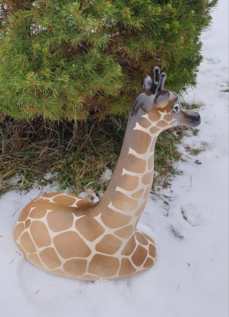 Keraamikast käsitööna valminud helebeež Aafrika kaelkirjak